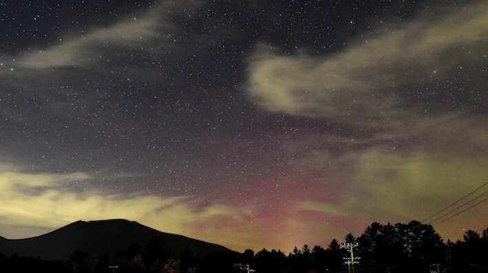 天文愛好家で中軽井沢在住の黒岩秀一さんが5月11日夜、町内からオーロラの撮影に成功した。肉眼では確