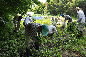 地域の人が集い、介護予防のための運動やレクリエーション、おしゃべりなどをして交流する地域住民主体