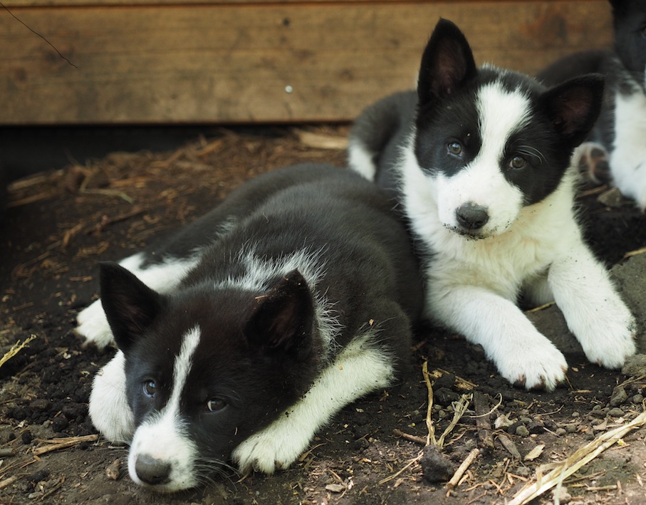 新ベアドッグのエルフ(左)とレラ(右)。ピッキオ提供。 軽井沢町の委託でツキノワグマの保護・管理