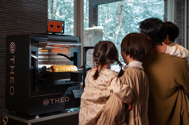 温かい焼き立てバウムクーヘンが食べられるブッフェが軽井沢に初登場。ユーハイムが開発したAI搭載の専用オーブン「THEO(テオ)」を使い、全長30㎝13層のバウムクーヘンを約20分かけて自動で焼き上げる。食品添加物は使用せず、砂糖・バター・小麦粉・卵のみで作る。食感はふんわり柔らかで、卵とバターの香りが広がる。ディナーブッフェ(大人6,050円)にて提供される。