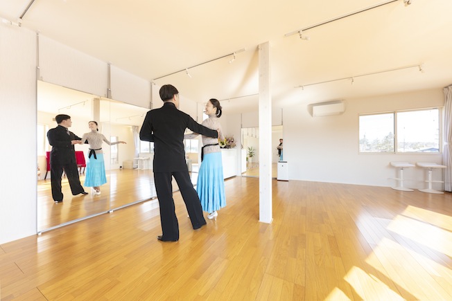 東京で15年間、社交ダンス教室を運営した夫妻が移住に伴い2月に、国道18号バイパス沿いにオープン。個別・ペア・家族で受けられる少人数レッスンが基本。「つまずき・転倒防止ボックスダンス」(40分、全5回19,000円)など、年齢に関係なく始められるプランもある。「ちょっと時間ができたというときに気軽に来て頂き、元気になって帰ってほしいですね」と増山和代さん。姿勢と歩き方、オンラインのレッスンにも対応している。