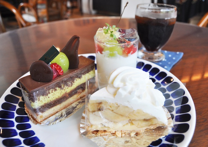 左から時計回りにピスタチオ・オ・トランシェ(¥500)、夏限定の杏仁プリン(¥500)、バナナパイ(¥450)。