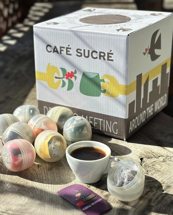 軽井沢焙煎所から、GACHA COFFEE(ガチャコーヒー)が販売中。コーヒーのSDGsをテーマに企画したボックスで、コーヒーバッグ1つと産地情報や風味の説明カードが1枚入ったカプセルが40個セットされている。カプセルは全10種類で、ブレンド2種のほか、ブラジルやコロンビアなど様々な産地のオーガニックやデカフェコーヒーがバランスよく楽しめる。「若い消費者が手に取りやすいよう、気軽に飲めるコーヒーバッグをガチャガチャ風に取り出すスタイルにしたのが好評です」と店長の石川さん。
