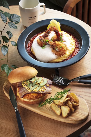 スフレトルティージャーハンバーガー(750円)と、軽井沢限定ふわとろ卵のホセ・ライス(2800円)