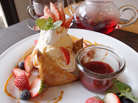 南原交差点の角に移転リニューアルした「みなみ庵」。昼はカツカレー(870円)や焼肉定食(940円)などの定食類と蕎麦、夜は季節の天ぷらや焼き魚、黒毛和牛ヒレステーキ(200g3800円)などを提供する。日本酒やウイスキー、ワインも取り揃え、五節句の時期はそれぞれの節句をイメージしたお通しを出す。「ワクワクするような料理を提供したい」と店主の高橋さん。ランチの大盛りや学生に人気のすき焼き・しゃぶしゃぶ食べ放題も健在だ。