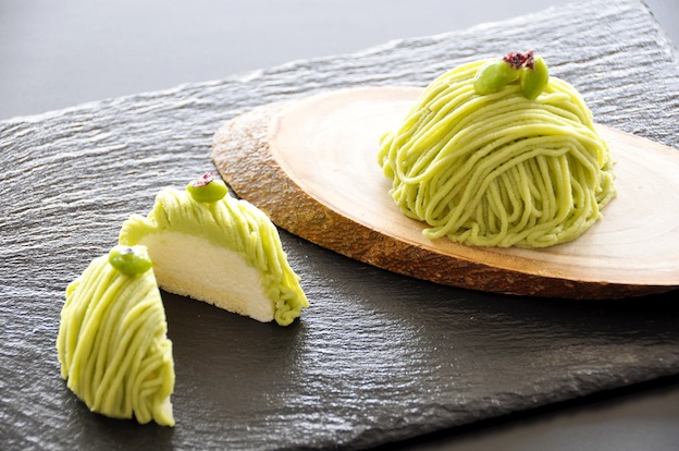 写真:「枝豆のモンブラン」(550円) 大賀通り沿いにある、ホテルマロウド軽井沢のティーラウンジに