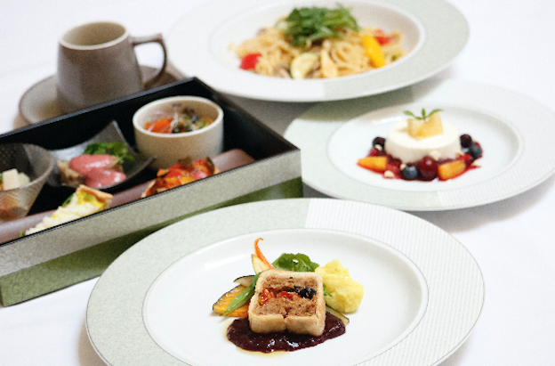 (写真:キッシュやパテ、カプレーゼなど前菜5種が入った「軽井沢御膳」は、通常とヴィーガンのいずれか