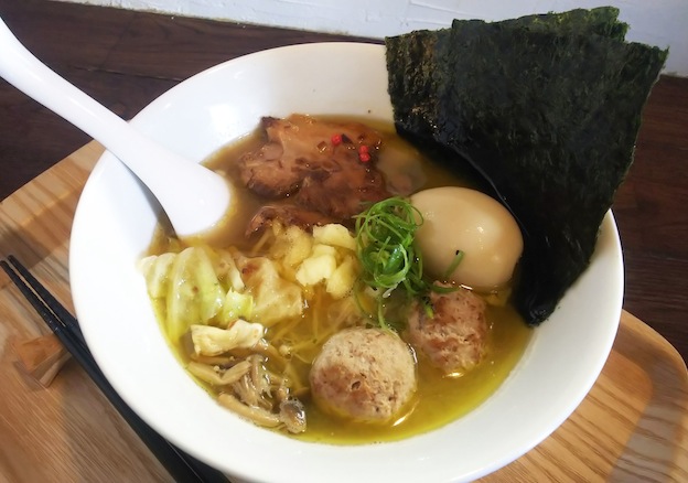 信州食材にこだわった 新感覚の塩ラーメン No.222・223(2021年12月)2021年12月16日 軽井沢駅から徒歩5分、カフェ風のラーメン店がオープンした。自家製の無添加ベーコンと鰹節、信州の野菜