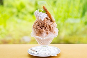 軽井沢の湧水を使い、厳しい寒さを利用して作った氷はふわりとした柔らかな口当たり。ジョン・レノンのレシピで知られるロイヤルミルクティーを使った優雅なかき氷がおすすめ。(各1200円)