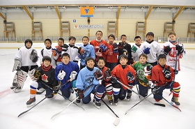 キャプテンで中部小6年の中澤悧斗君は「試合に出ている人も出ていない人も声を出して、盛り上げていきたい」、中村光君は「どんどん挑戦して優勝を狙いたい」と意気込みを見せた。監督とコーチ3人も同チームのOB。監督の高橋光洋さんは「ホッケーを通じ、あいさつや礼儀、協調性なども学んでもらえたら」と話した。練習の見学も随時受け付け。体験の人にはスケートや防具の貸し出しを行っている。
