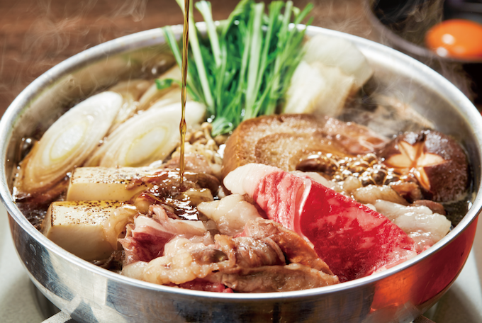 蓼科牛の旨みをたっぷり堪能できる、寒い季節の定番メニュー。出汁にこだわった割り下が、脂ののったお肉と冬野菜の味わいを引き立てる。4,620円。