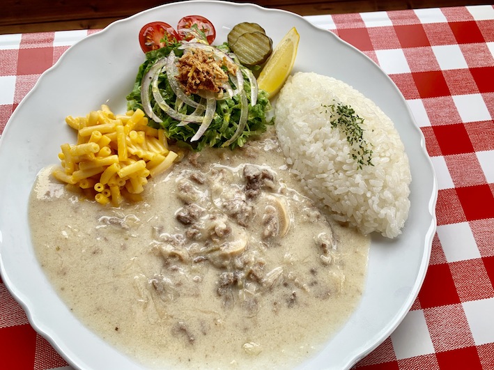 ビーフストロガノフ オーナーが子どもの頃に家庭で味わっていたレシピをベースにしている。長時間じっく