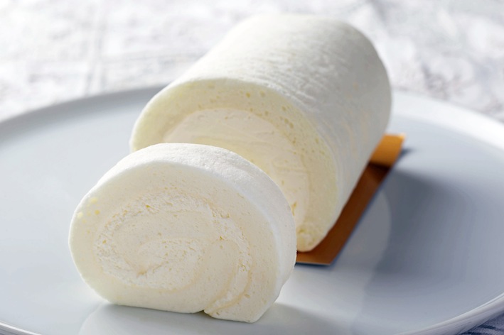 白い軽井沢ロールケーキ 軽井沢の冬をイメージし、卵の白身だけで焼き上げた生地で、練乳入りのミルキー