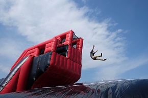 高さ6m(小学4年以上)、9m(中学生以上)から、巨大クッションに向かって飛び降りる「スカイジャンパー」。大きなすべり台「ふわふわスライダー」も登場する。