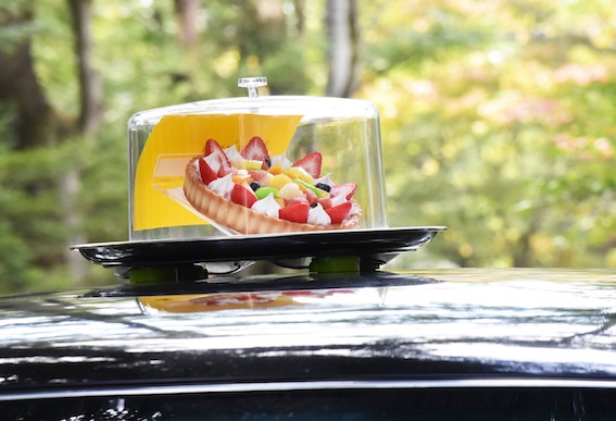 松葉タクシーが樹脂製で作った苺のタルトやフルーツのタルトをあんどんがわりに乗せた「スイーツタクシー」を町内で2台、10月18日から走らせている。全国10のタクシー会社が加盟している「ご当地タクシー協会」が発案したもので、地元の名産にちなんだものを乗せてPRする。松葉タクシーは軽井沢のスイーツを楽しんでもらいたいと「軽井沢スイーツ散歩2018」に合わせて運行を開始した。「利用者には時間が許す限り、観光はもちろんスイーツも食べて軽井沢を楽しんでほしい」と同社担当。