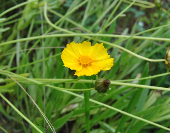 オオキンケイギクは北アメリカ原産の多年草で、以前は園芸用に輸入され日本で流通。道端や河川敷など日当りの良い場所に生息し、6月頃からコスモスに似た黄色の花を咲かせる。