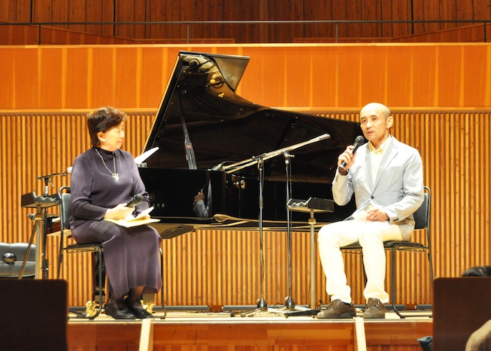 7月29日、軽井沢大賀ホールで開かれた音楽家マキ・奈尾美さんのコンサートで、御代田町のケアマネージャー美齊津康弘さんが、10代の頃の母の介護経験をもとに、ヤングケアラーに必要な支援などについて語った。美齊津さんは仕事を通じてマキさんと知り合い、昨年ヤングケアラーとして苦しむ子どもに向け作った曲の歌唱をマキさんに依頼しCDも制作した。