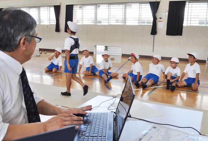 7日、計測を終えた3年生の男児は「今まで歩き方を意識したことがなかった。データを見るのが楽しみ」。レインボー・ウォーキング理事で、センサーを開発したマイクロストーン(佐久市)社長の白鳥敬日瑚さんは「子どもの頃にバランスのいい歩き方を身につけて、一生涯自分の足で歩けるからだ作りを目指してほしい」と話した。