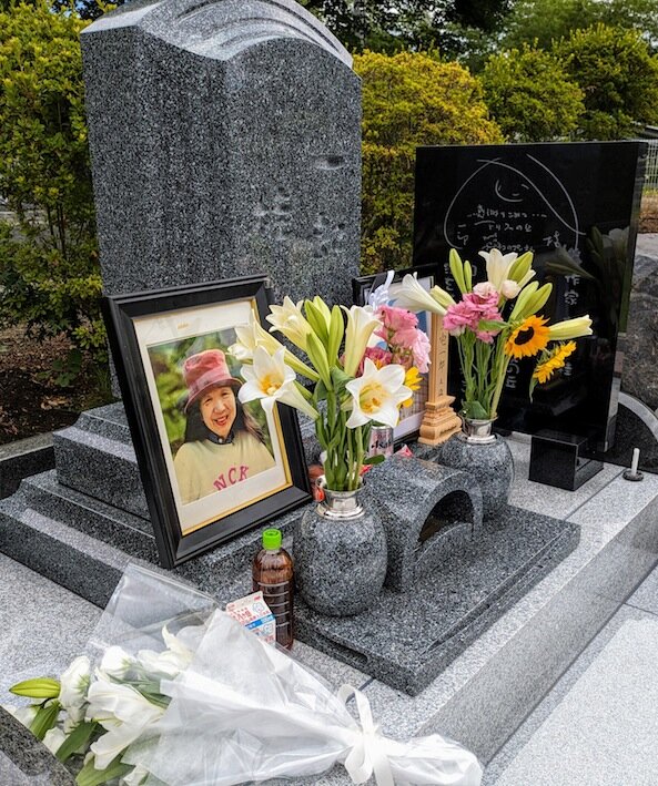 「天国にいちばん近い島」で知られる作家、森村桂さんの納骨式が7月19日、西軽井沢の向原霊園で行われた。森村さんが亡くなったのは平成16年9月だが、夫の三宅一郎さんが身近に置きたいと遺骨を自宅に持ち続けていた。三宅さんが亡くなった後、親族は長く生活していた軽井沢で二人を眠らせてあげたいと考えて場所を探し、樹木に囲まれたこの環境を選んだ。墓石には二人の名を刻み、その横には森村さんが描いた自画像とアリスの丘の文字、猫のプーさんのイラストを彫刻した石が置かれている。親族の犬伏雅士さんは「長年の読者やファンの方にも来て偲んでいただけたらと思っています」。ギタリストの原荘介さんが9月に東京で加藤登紀子さんとの「偲ぶ会」を企画している。