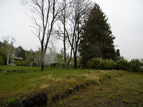 2016年4月現在の状態。美術館の建物や白樺林はそのまま残っている。左端の土地に役場の庁舎を建設。