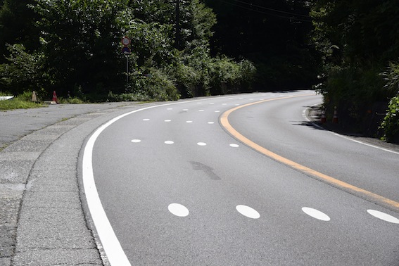 群馬県安中市と軽井沢町を繋ぐ国道18号碓氷バイパスに8月、道路に合わせてドットをペイントし、視覚