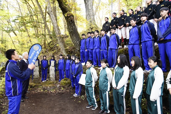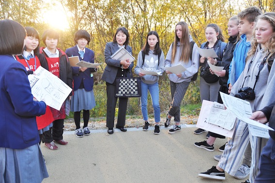 交換体験学習で来日していたカナダ・ウィスラー市の学生が10月29日、湯川ふるさと公園に設置するイ