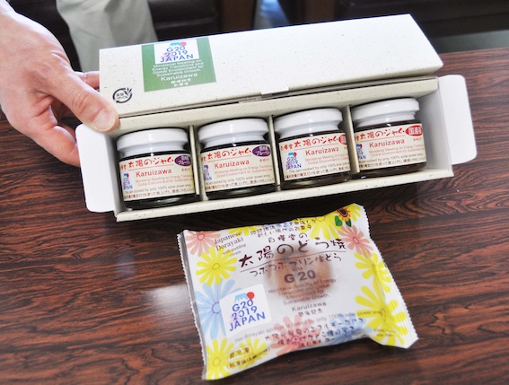 太陽のジャム国産苺346円・信州産ブルーベリー378円、太陽のどら焼き270円。 浅間山・離山をイ