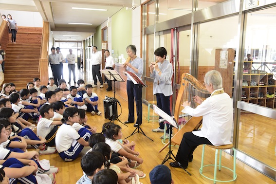 軽井沢西部小学校で7月24日、授業への影響がない休み時間を利用して、コンサートが催された。演奏し