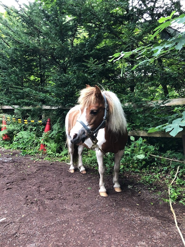 写真提供・寺田良子 8月14日16時頃、雲場池周辺にポニーが迷い込んだ。雲場池隣のレストラン雲場