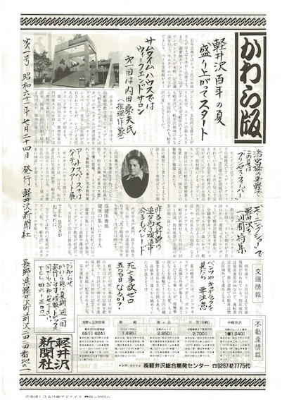 軽井沢新聞の前身『かわら版』第1号(昭和61年発行)のトップニュースは、「軽井沢百年の夏、盛り上