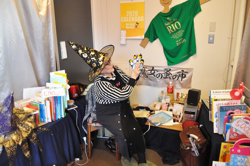 英語絵本の読み聞かせをする魔女。開店は金〜月曜の12:30〜20:00。 中軽井沢の地域交流施設