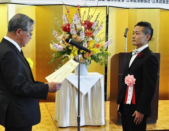 授賞式での市田さん。 フランス料理総菜とフランス菓子を扱うタルタニアンが食品等流通合理化促進機構