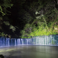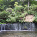 旧軽井沢から北軽井沢へと続く白糸ハイランドウェイ。その沿線にある白糸の滝は、その名の通り緩やかに弧を描きながら幅約70mにわたって3mの高さから無数の白い絹糸のように、岩の間を流れ落ちている。透明度の高い水がつくる水飛沫は涼感を演出し、夏はひんやりとした冷気が心地よい。紅葉の季節はもちろん、氷柱がつくられライトアップされる冬も人気。白糸ハイランドウェイの料金所軽井沢方面口の近くにある、高さ約6m、幅約1.5mの「竜返しの滝」も見応えのある滝。