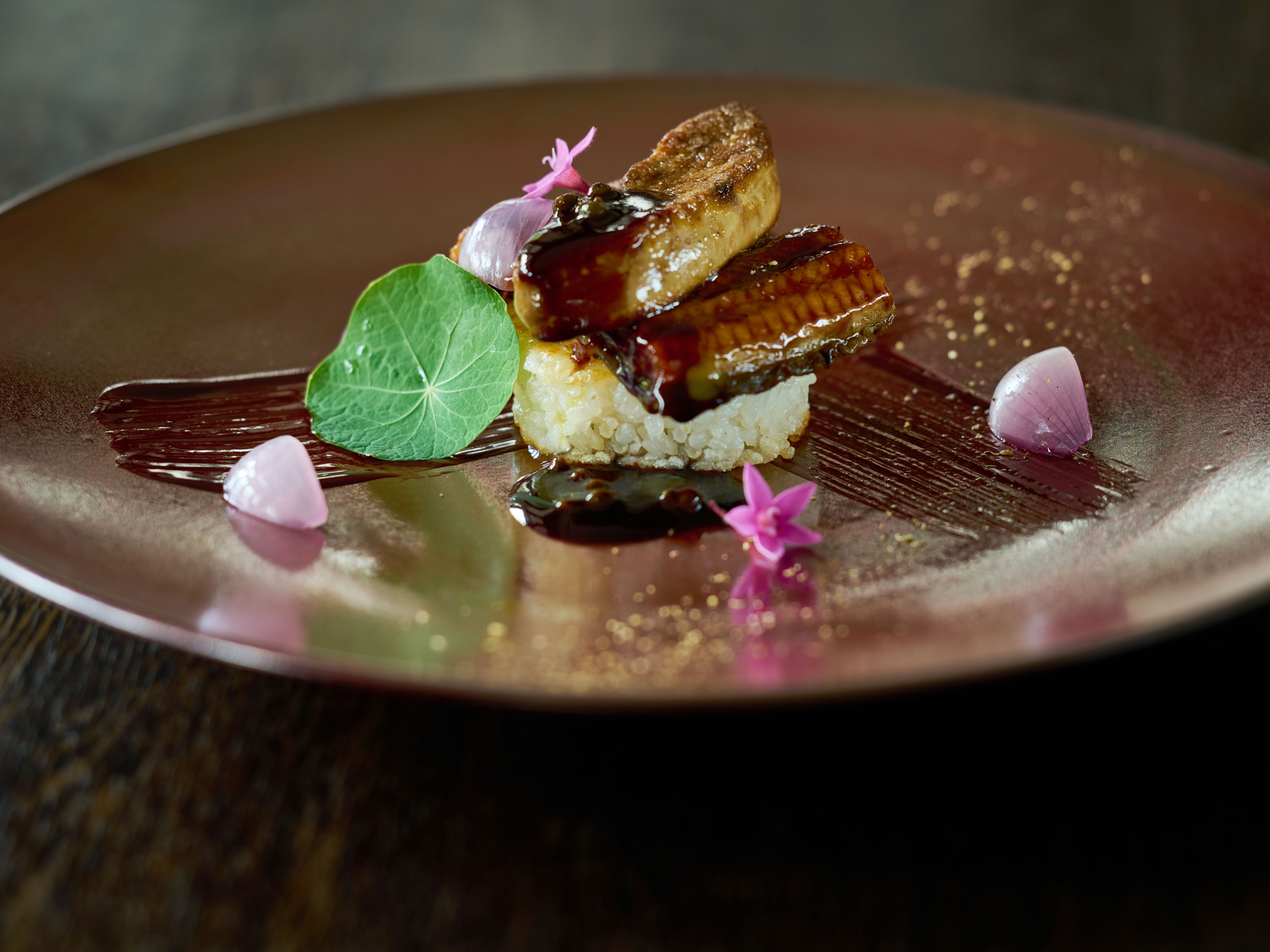 オープンキッチンを備えた開放感あふれるメインダイニングに、信州の地場食材や食文化を取り入れたディナーコースが登場する。和洋織り交ぜた独自のアレンジで全7品を提供。信州エリアで古くから食されてきたウナギは、相性のいいフォアグラとともに、五郎兵衛米の焼きリゾットと信州産山椒を効かせたポルトソースで頂く。爽やかなミント風味の調味料を添えた佐久産鮎のポワレや、蕎麦塩生地で包み焼きした信州産牛フィレ肉など、演出も楽しいメニューが続く。夏らしく仕上げたカクテル2種(8月31日まで)も用意。土地の恵みを享受し、心と身体が満たされるひとときを。