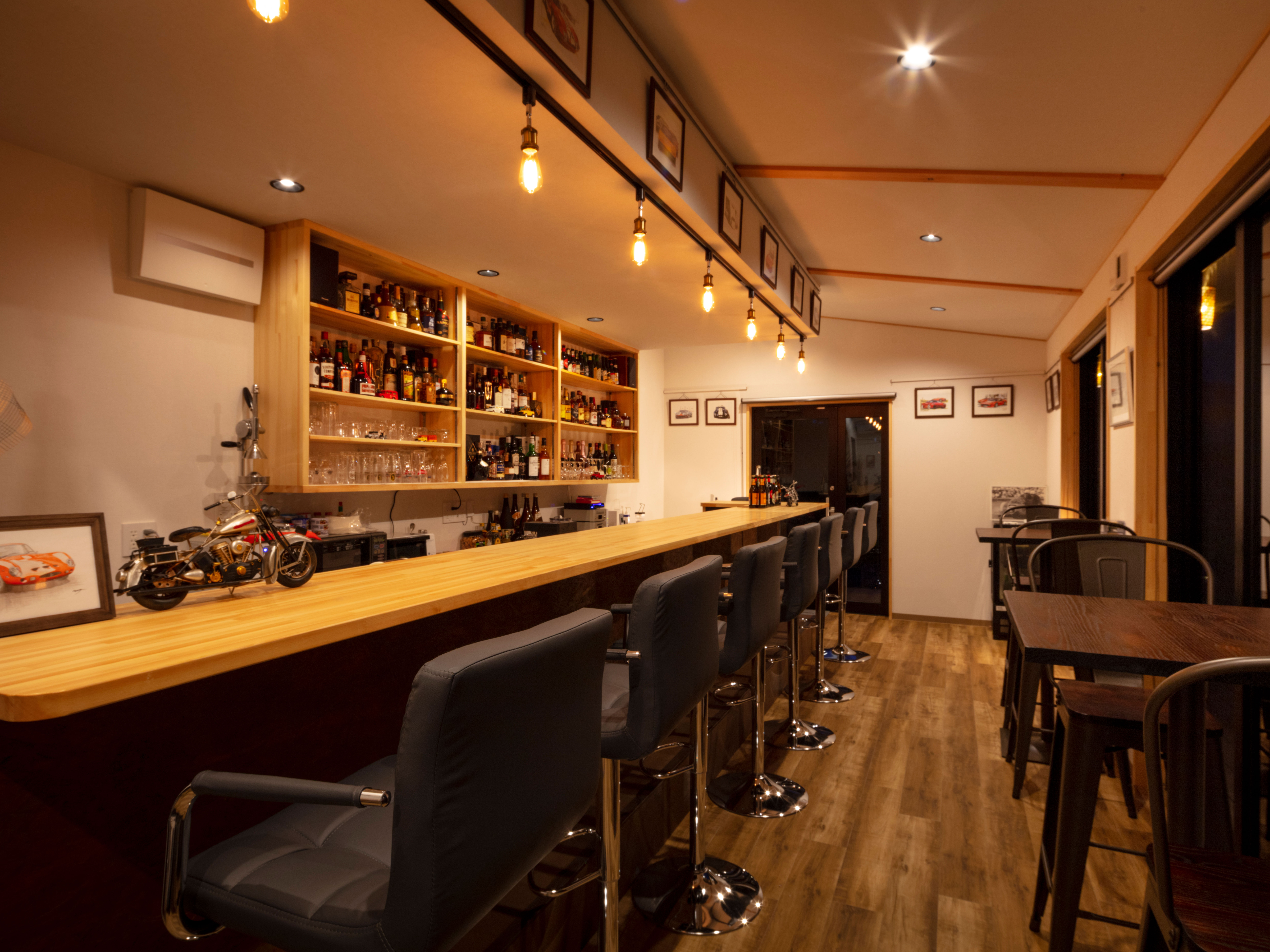 世界15カ国のビールや、ツウもうなる限定物のウイスキーなど、100種以上のお酒をそろえるカフェ&バー。賃貸型ガレージハウスを営むクルマ好きオーナーが、「気楽に立ち寄れる友人の家」のような居心地を目指し2021年6月にオープンした。甘みと独特のフレーバーが調和する11年熟成の「トバモリー2008」、ワイン樽で追加熟成させた信州産の「マルスウイスキー SHIKI」など、ウイスキーのラインアップには自信あり。ノンアルコールの海外ビールやカクテルもあり、付き添いで来ても楽しめる。日中はカフェとしても営業。テラス席で風に吹かれるのが気持ちいい。