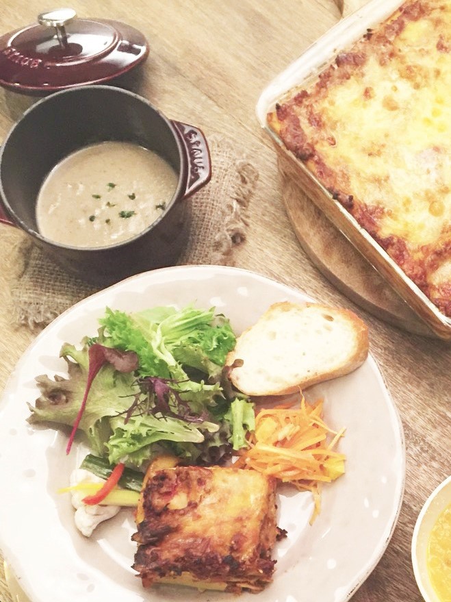 ・ベランダ風ラザニア+サラダ+総菜(軽井沢産フルーツトマト使用)・・1320円