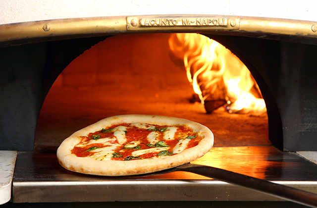 ミシュランに選ばれたナポリのピザ職人から直接教わった独自製法の生地を、直輸入のピザ窯で焼き上げる。