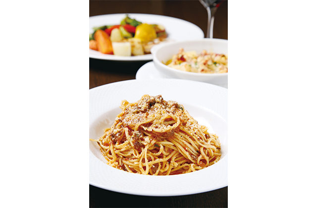 麺の種類ごとに小麦粉をブレンドし、温度や湿度に合わせて仕上げる自家製パスタは、しっかりとした歯ごたえと小麦の香りが格別。