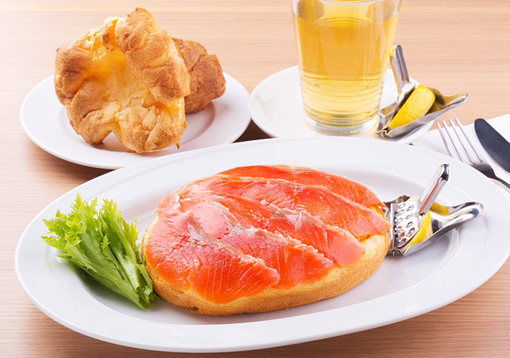 一番人気の「クリームチーズ入りスモークサーモンのオムレツ」はポップオーバーかトーストがついて1,180円。