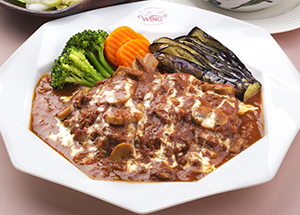 お昼の生番組「ヒルナンデス」で紹介されたのがこの「ボイルドポークのローマ風」です。6時間じっくり煮たポークはとろける柔らかさ。5mm厚さの肩ロースを溶けるまで煮て作る特製ポークソースと絶妙に合った逸品です。リピーターに人気のこだわりの味をぜひお試しください。
