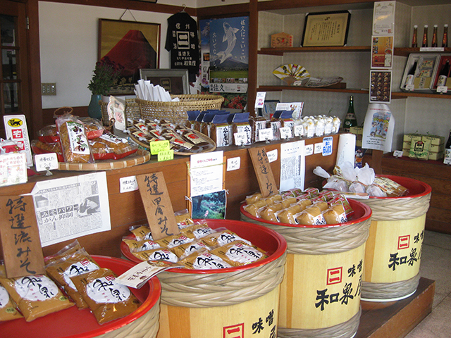 創業嘉永八年(江戸時代後期)より、百五十余年もの伝統を信州佐久の地で守り続けている味噌屋。。定番商品「蔵造りみそ」「田舎こうじみそ」は、厳選された原料を使用し、旦念に熟成させた塩分控えめのまろやかな味が好評だ。贈答用に化粧箱入りや木樽入りなどもある。