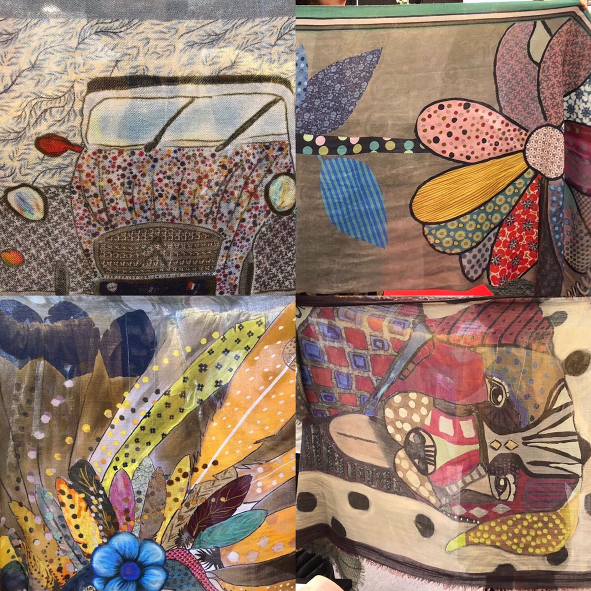 フランスのストールブランド「STORIATIPIC」旅好きのデザイナーが世界中を旅して描いた楽しい柄です。