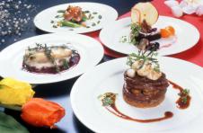 シェフの贅沢メニューは本格仏料理フルコース。地元や旬の素材を使った評判のフルコースは季節感を見事に表現する。