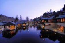 自然豊かな谷あいの地に位置する「星のや軽井沢」は、13000坪の広大な敷地に「谷の集落」が広がる。日本が独自の文化を大切にしながら近代化していたら...という「もうひとつの日本」の姿を描き出した新趣の滞在型温泉旅館だ。川に浮かぶように点在する「水波の部屋」、野鳥の森を一望できる眺望が魅力の「山路地の部屋」など客室は77室全て趣きが異なる。日本料理・フレンチなど、その時の気分で選べる食事や、ブランチ感覚で正午まで楽しめる朝食など、時間の制約がない滞在で、時を忘れて寛げる。