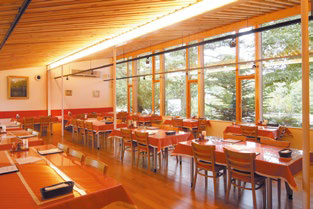 季節の移ろいを楽しめるガラス張りの店内は開放的