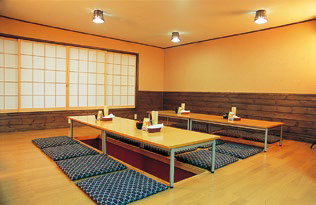 2階の宴会場 (各種宴会貸切り可。最大40名まで、要予約)