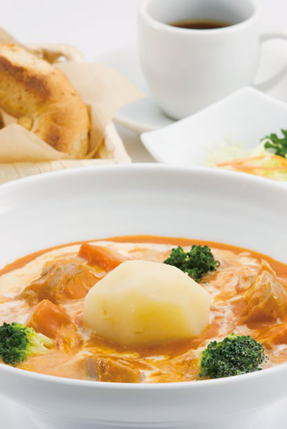 御牧ヶ原の白土じゃがいもが入った「天空シチュー」1,200円。