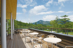 軽井沢から浅間サンラインを車で約1時間。標高2,000mの自然体験プログラムが充実。小学生でも楽しめるピクニックやガイド付きトレッキング、本格的な登山まで様々。散歩のあとは、併設カフェでゆっくり。テラス席で、地元素材を使用したメニューを味わいたい。