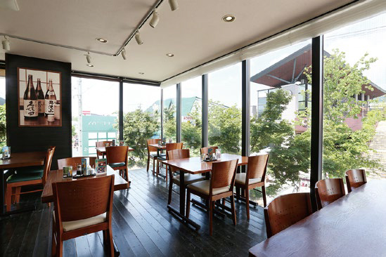 旧軽銀座を見下ろす大きな窓。街の喧騒からちょっと離れて落ち着ける店 内。