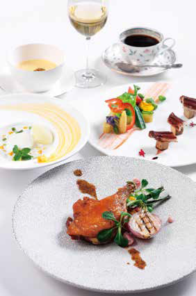 ランチコース一例。県産食材を中心に、 四季折々の旬の素材を堪能できる色鮮やか で繊細なフレンチ。